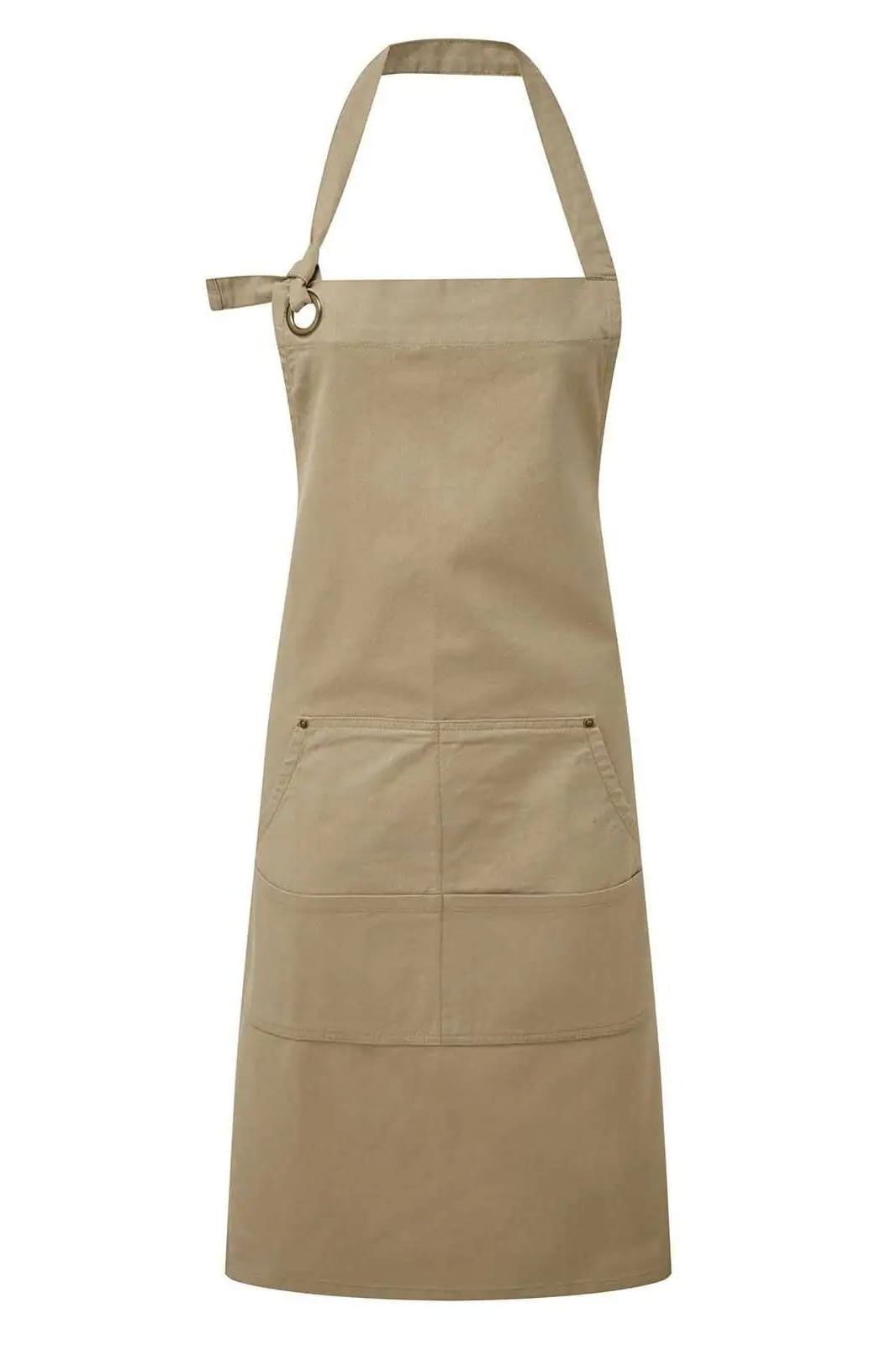 100% cotone canvas pesante. Grembiule in canvas, tasca a 4 scomparti con cuciture a contrasto, laccio al collo con occhiello oversize, pesante e resistente.