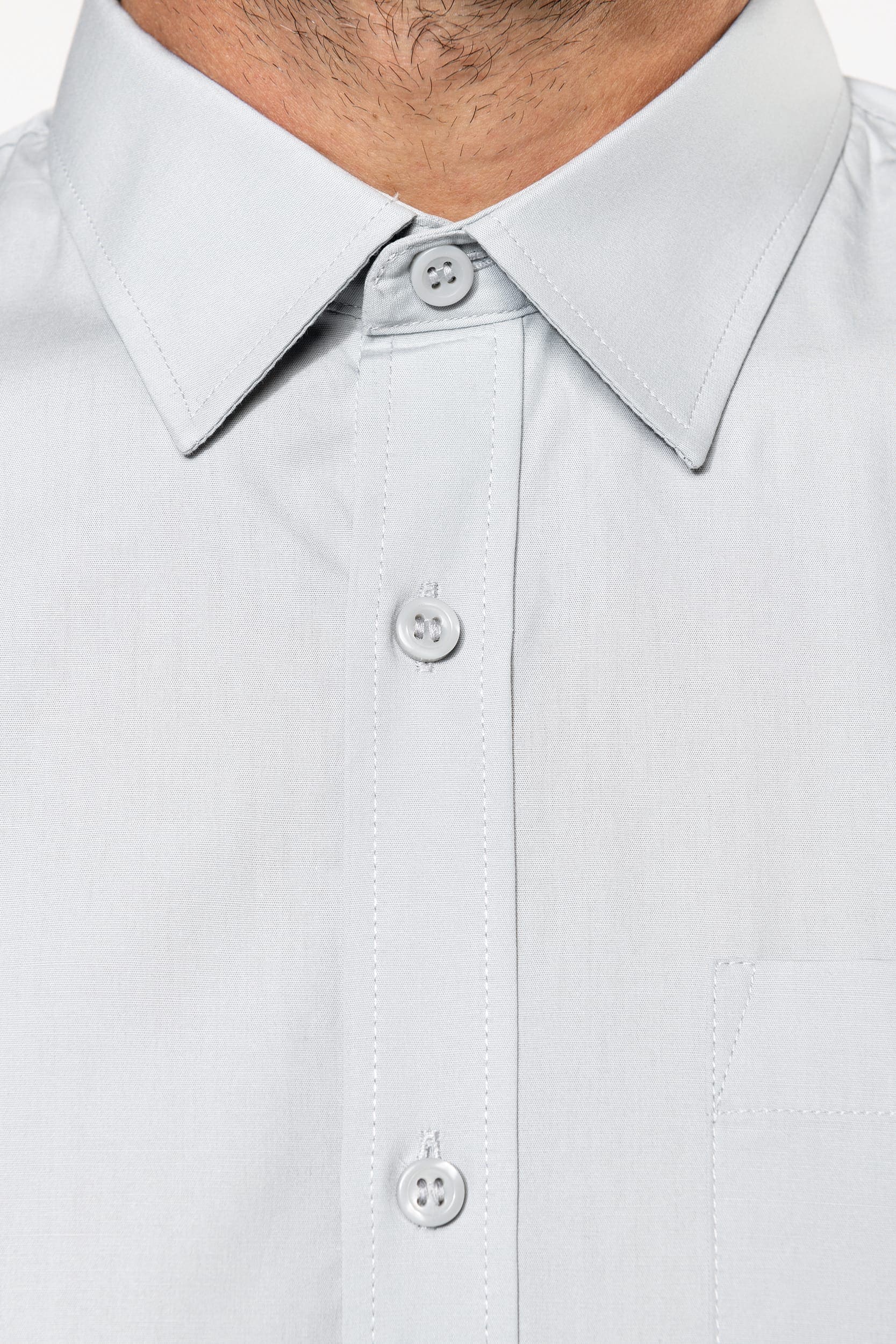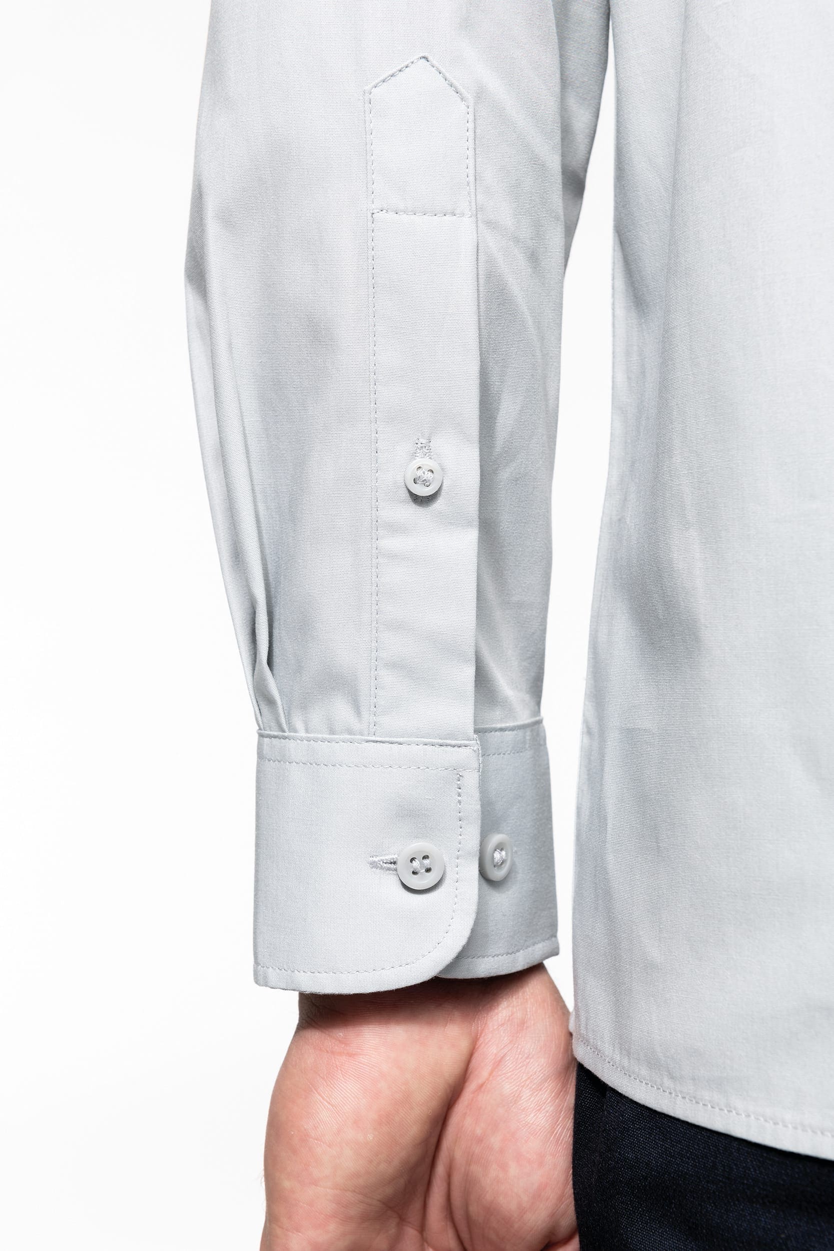100% Cotone Popeline. Tessuto facile da stirare. Colletto alla francese con stecche. Bottoni tono su tono. Taschino lato sinistro. Carrè posteriore con 2 pieghe laterali. Cuciture a doppia piega. Polsino regolabile. 2 bottoni di ricambio. Orlo stondato.