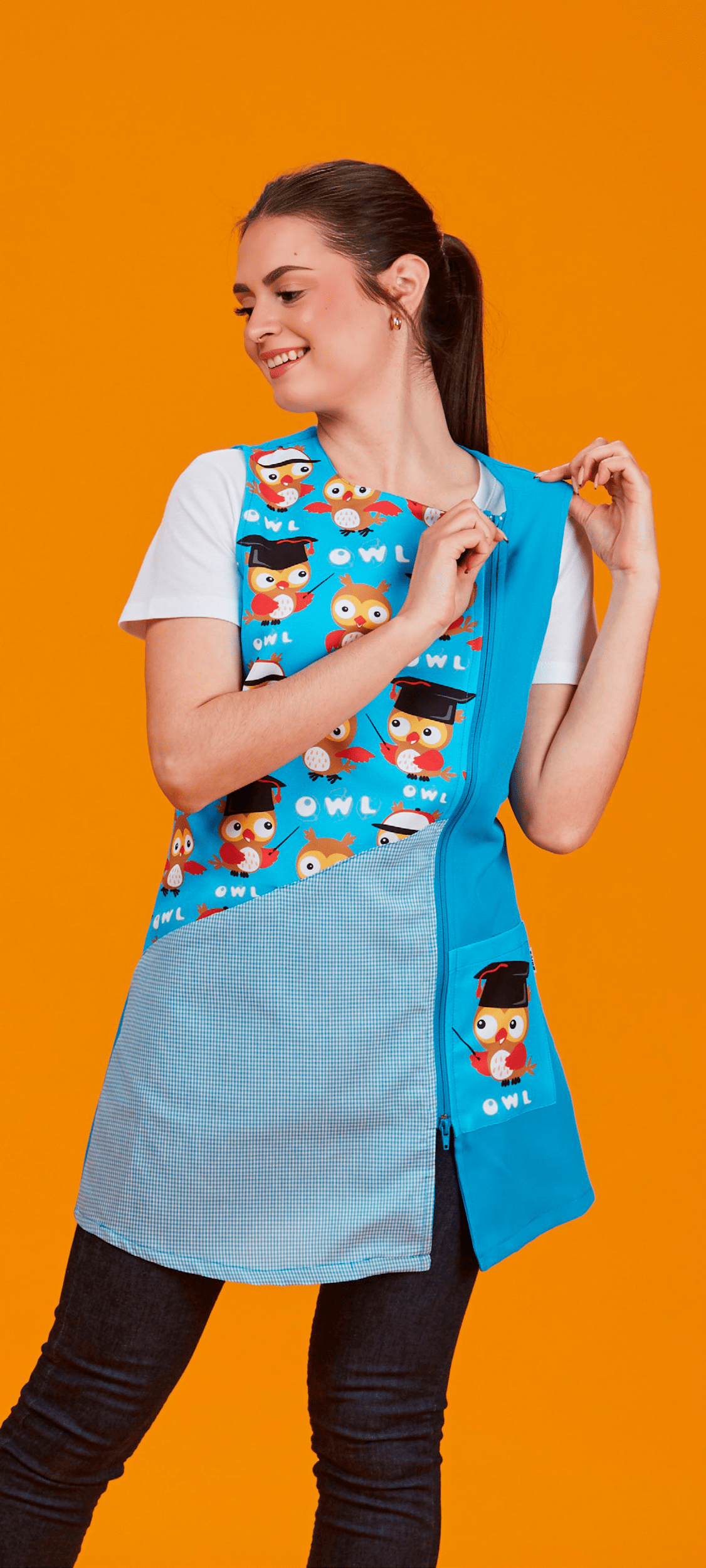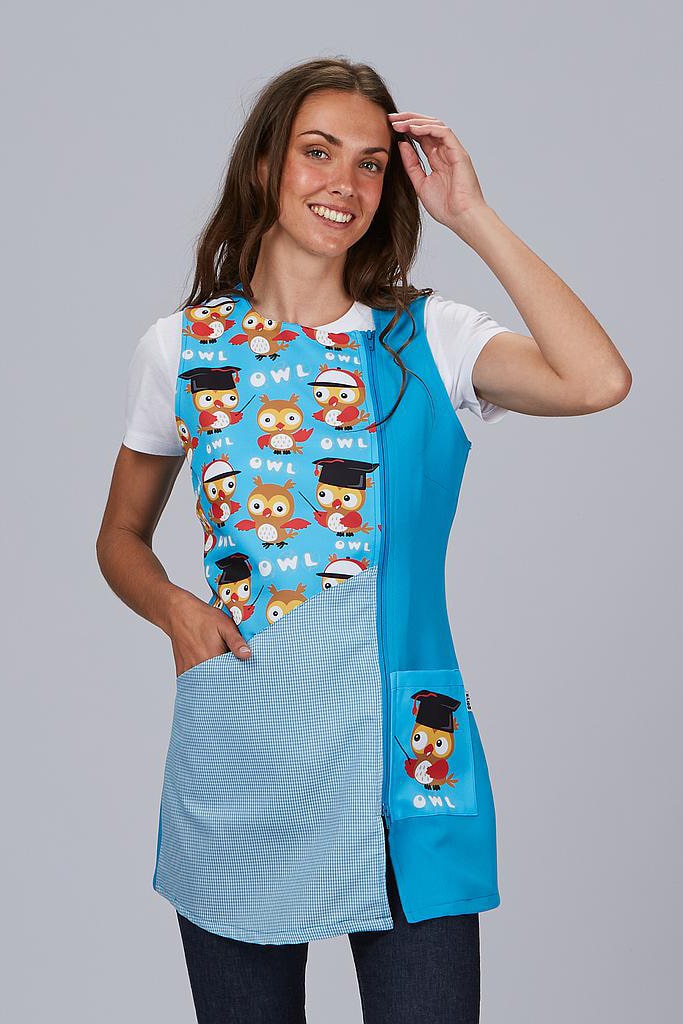 La blusa senza maniche con stampa gufo è la soluzione perfetta per chi desidera un’uniforme da lavoro originale, confortevole e funzionale, capace di trasmettere energia e professionalità.