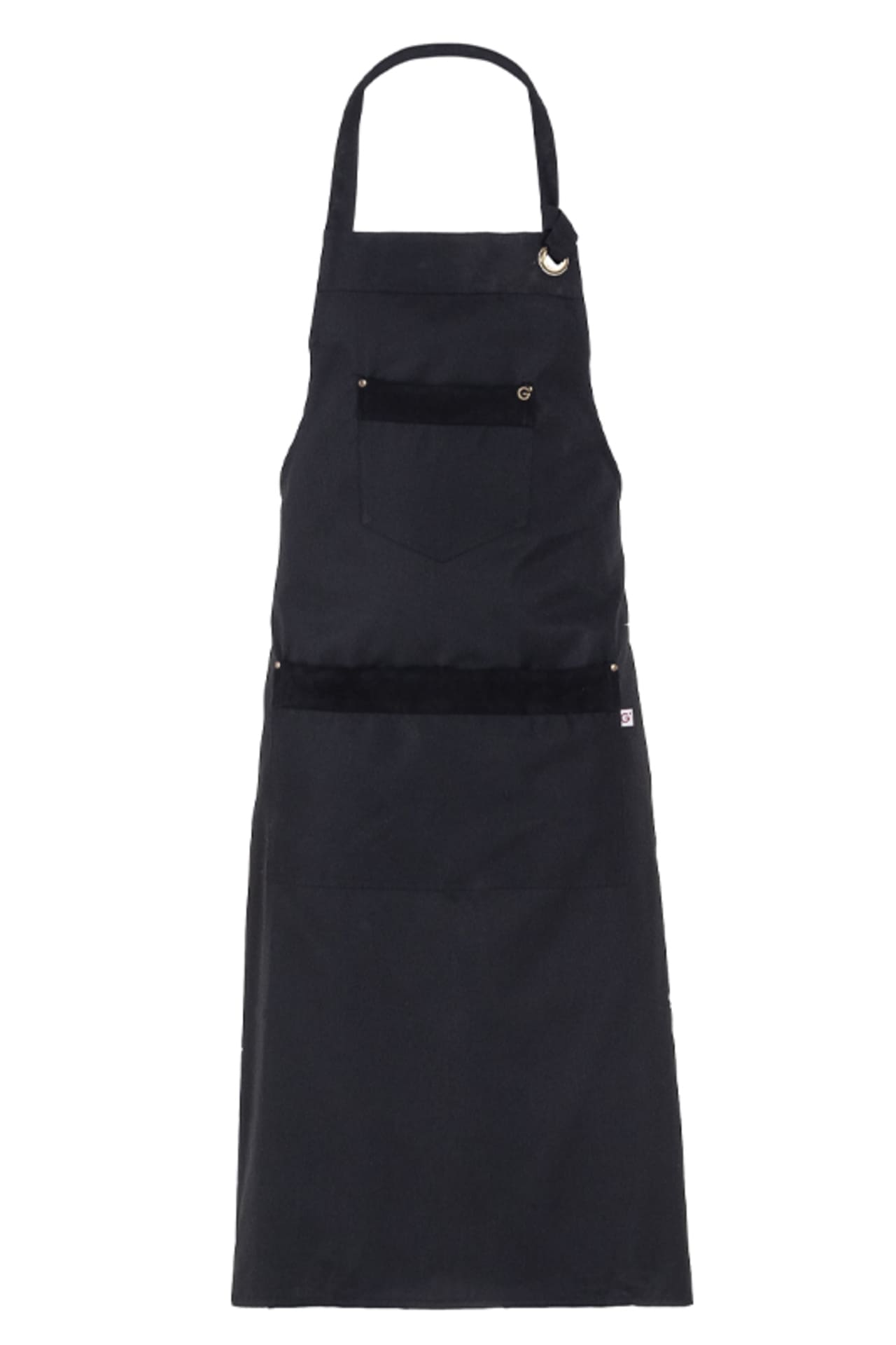 Il grembiule con pettorina Ryan, moderno e di sicuro effetto estetico, unisce essenzialità e cura dei dettagli in un unico capo. Questo grembiule da lavoro dalle dimensioni ampie ha una allacciatura regolabile mediante una vela in ottone anticato, una grande tasca centrale divisa da un’impuntura a due aghi e una tasca sul centro della pettorina. Completamente ribattuto con impunture a due aghi, è impreziosito da diversi rivetti posti come ancoraggio sulle tasche. Il materiale è un resistente poliestere misto cotone, impreziosito da inserti di alcantara in tinta. Le due versioni disponibili sono in nero o in un raffinato color verde militare, entrambe caratterizzate dall’immancabile logo “G’” in ottone, che contribuisce ad illuminare il capo.
