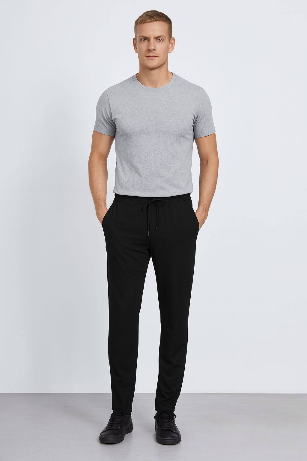 Il design jogger fit unisce eleganza e praticità: la vita posteriore semielastica con coulisse regolabile assicura una vestibilità personalizzata, mentre gli orli elasticizzati offrono un look contemporaneo e professionale.