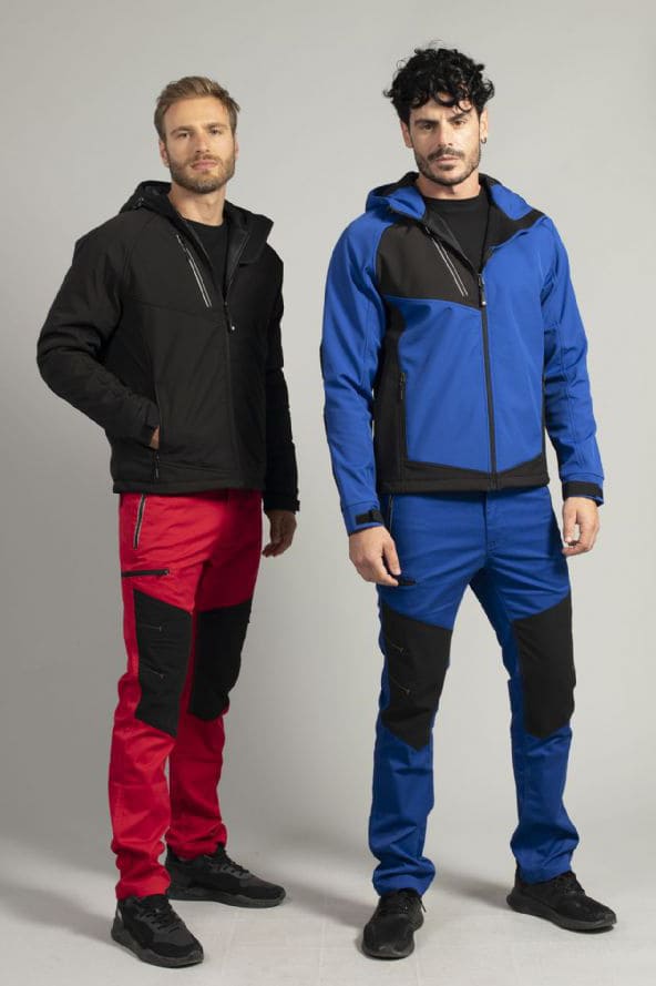 - Tessuto antiabrasione elasticizzato 92% poliestere - 8% elastan sulle ginocchia con impunture in contrasto